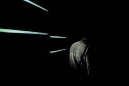 El Pasajero es una instalación inmersiva que sumerge al visitante en un estado de realidad alterada. Mediante el diálogo entre un dispositivo electrónico de gran formato y un sistema audiovisual compuesto por tres retroproyecciones, la obra despliega un imaginario que muestra el tránsito entre los diferentes estados de la materia, intervenidos por la transmutación de la energía en forma de luz. A través de elementos tecnológicos dispuestos como una gran matriz, la estructura se presenta como un dispositivo ritual que evoca a un tiempo primitivo. Circuitos electrónicos excitan el gas contenido en cientos de lámparas, invocando el fuego eléctrico. Océanos y rocas ralentizan la consciencia en el sueño de la larga noche. El Pasajero abre una grieta que invita al espectador a dejarse llevar por el misterio de la materia y el tiempo.